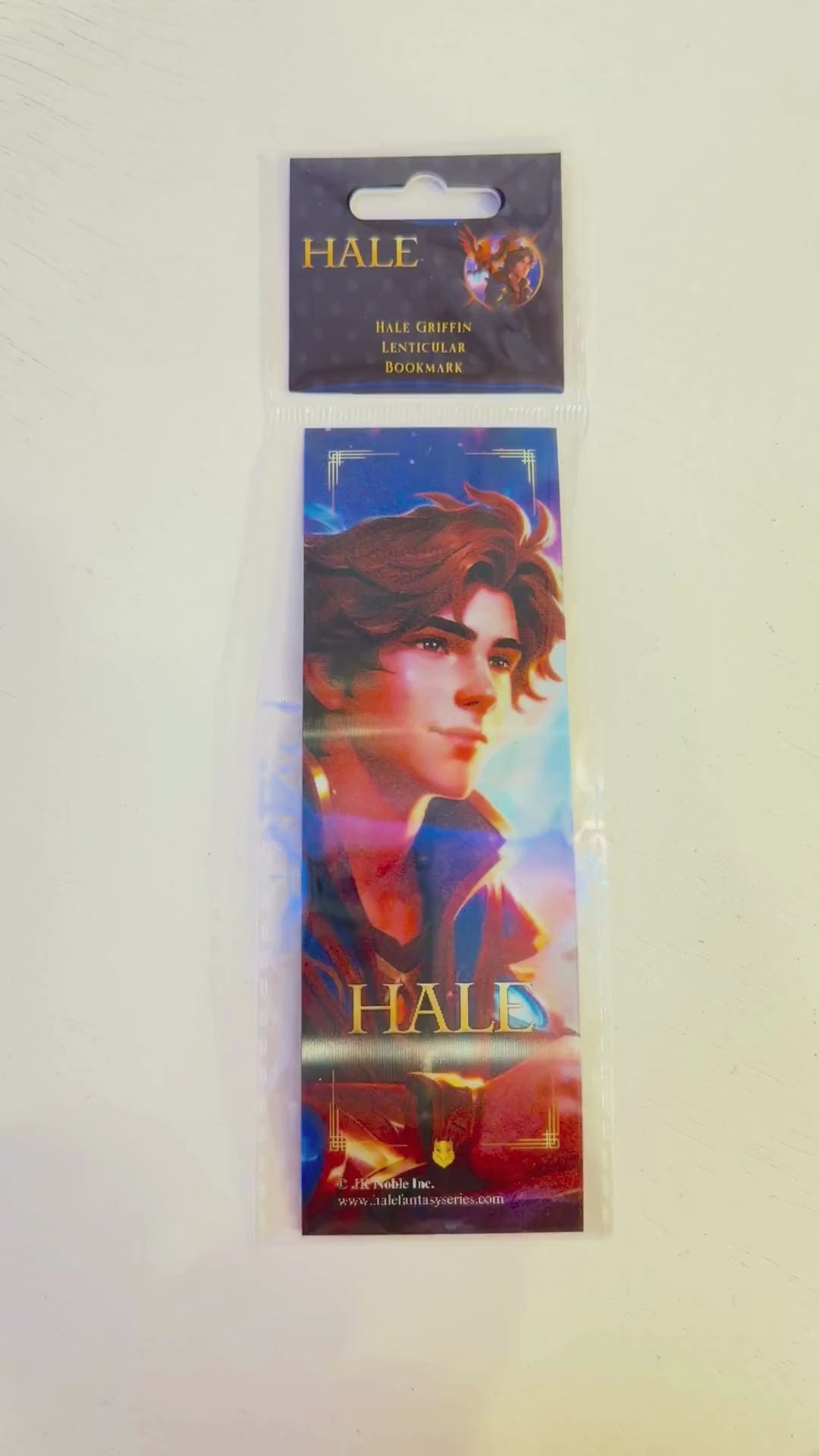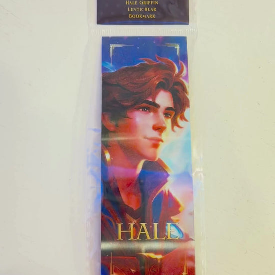 As you tilt the bookmark, watch Hale’s striking brown hair and determined gaze shift into the powerful visage of the Griffin, his magnificent wings unfurled against a luminous sky. This seamless transformation embodies his journey of courage, destiny, and self-discovery.