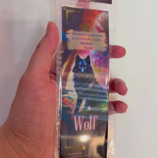 Tilt the bookmark to witness Robin’s breathtaking transformation into her wolf form. The lenticular motion reveals her powerful figure moving through the moonlit jungles of the Arketcha, her golden eyes reflecting wisdom and instinct. The dynamic imagery captures both her strength and her deep spiritual bond to the wolves of her tribe — protectors of the sacred lands and keepers of balance.