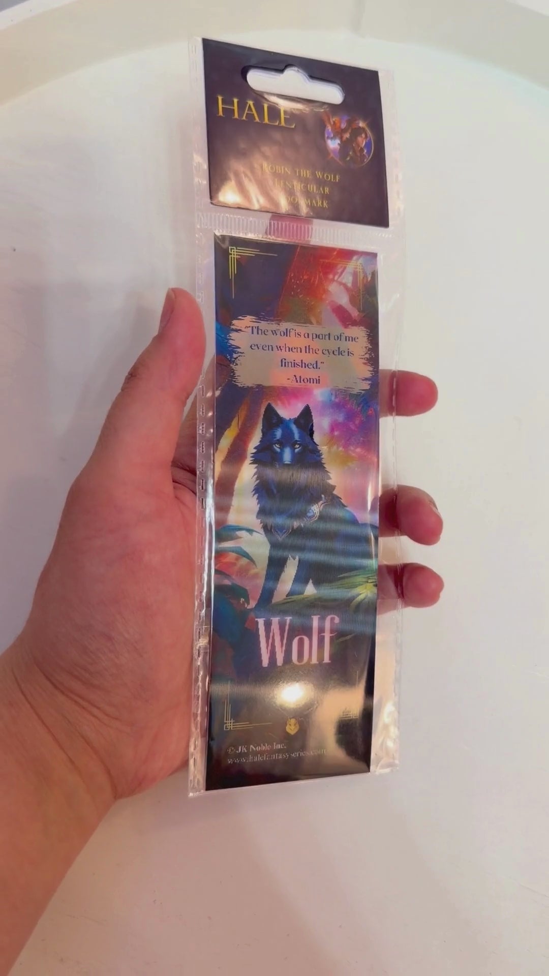 Created and illustrated by J.K. Noble, the Robin the Wolf of the Arketcha Tribe Lenticular Bookmark beautifully captures the mysticism and wild grace of the Arketcha. A must-have for collectors and fans of the Hale series, it celebrates a warrior whose courage runs as deep as the call of the wild.